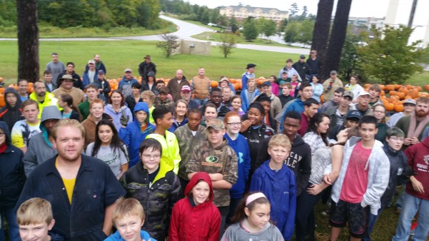 This year, one of our young parishioners talked his Dutch Fork High School ROTC unit into helping, our Boy Scout troop and Venture Scouts turned out, members of the parish, and one former member who drove in from out-of-state appeared, undeterred by the on-coming weather, as I am told he does every year. “It gets in the blood, the pumpkin patch,” he winked in explanation.
