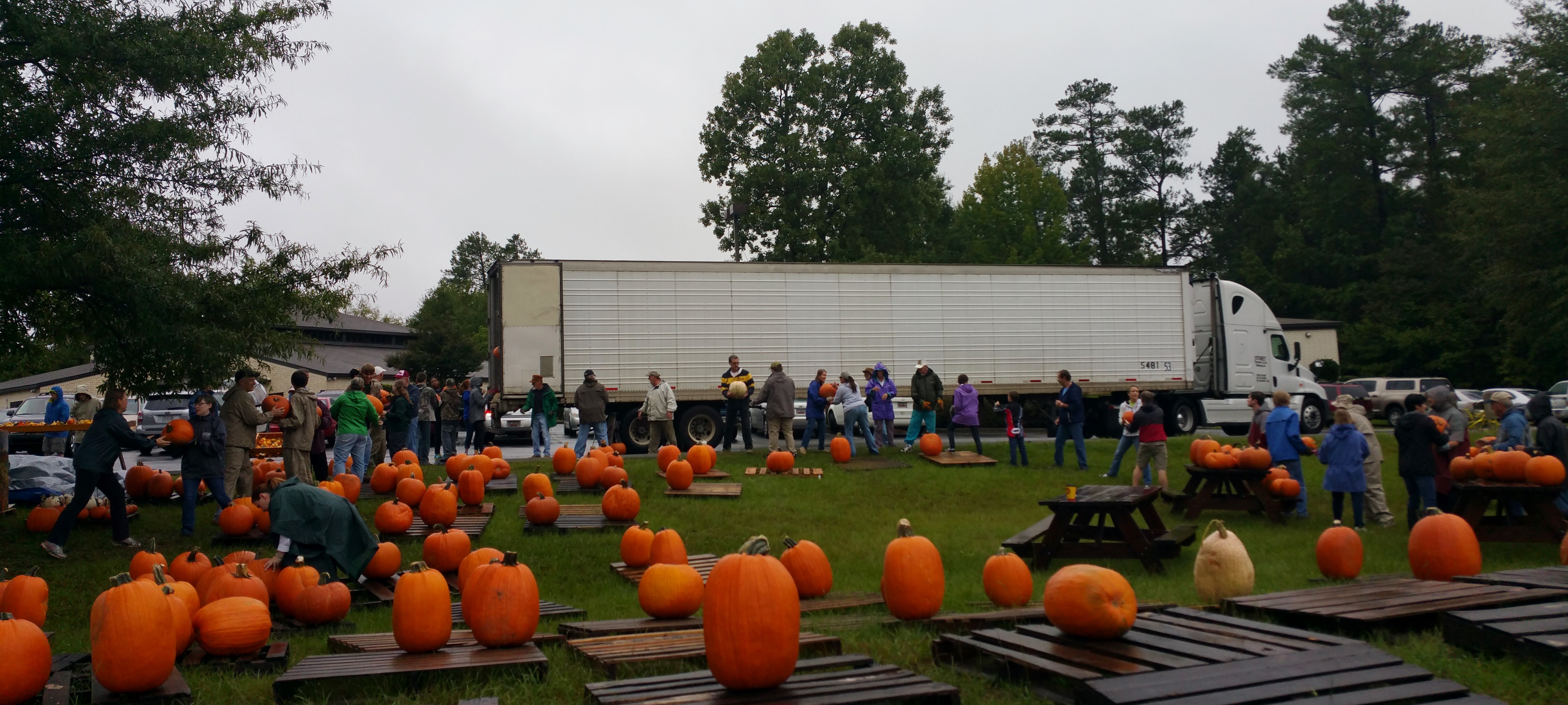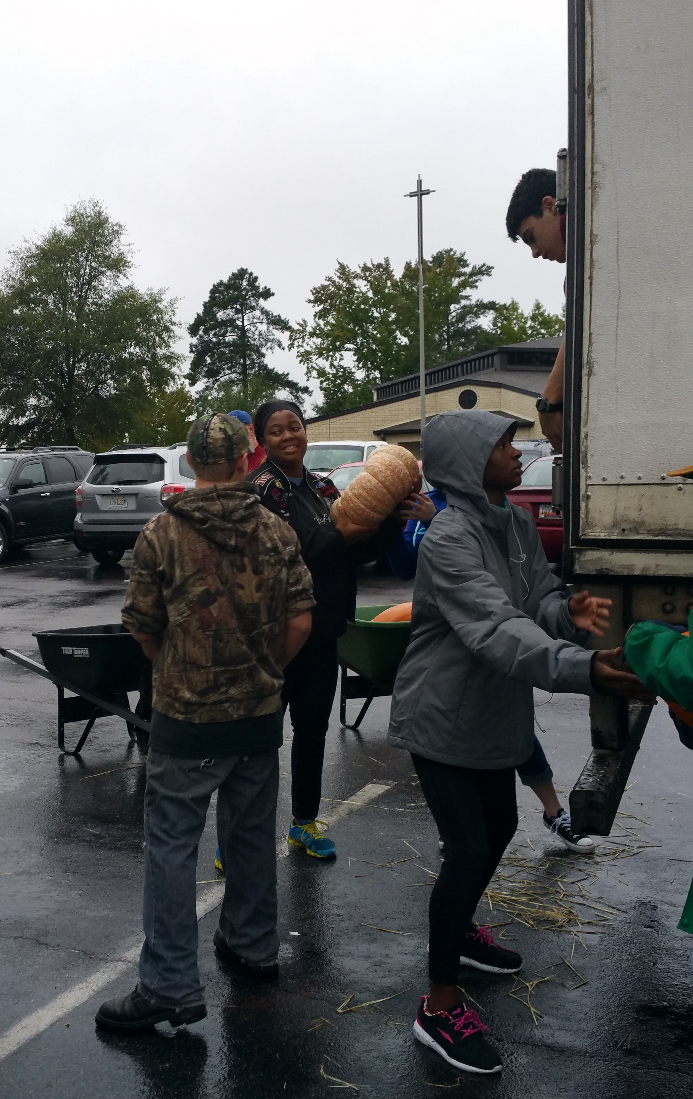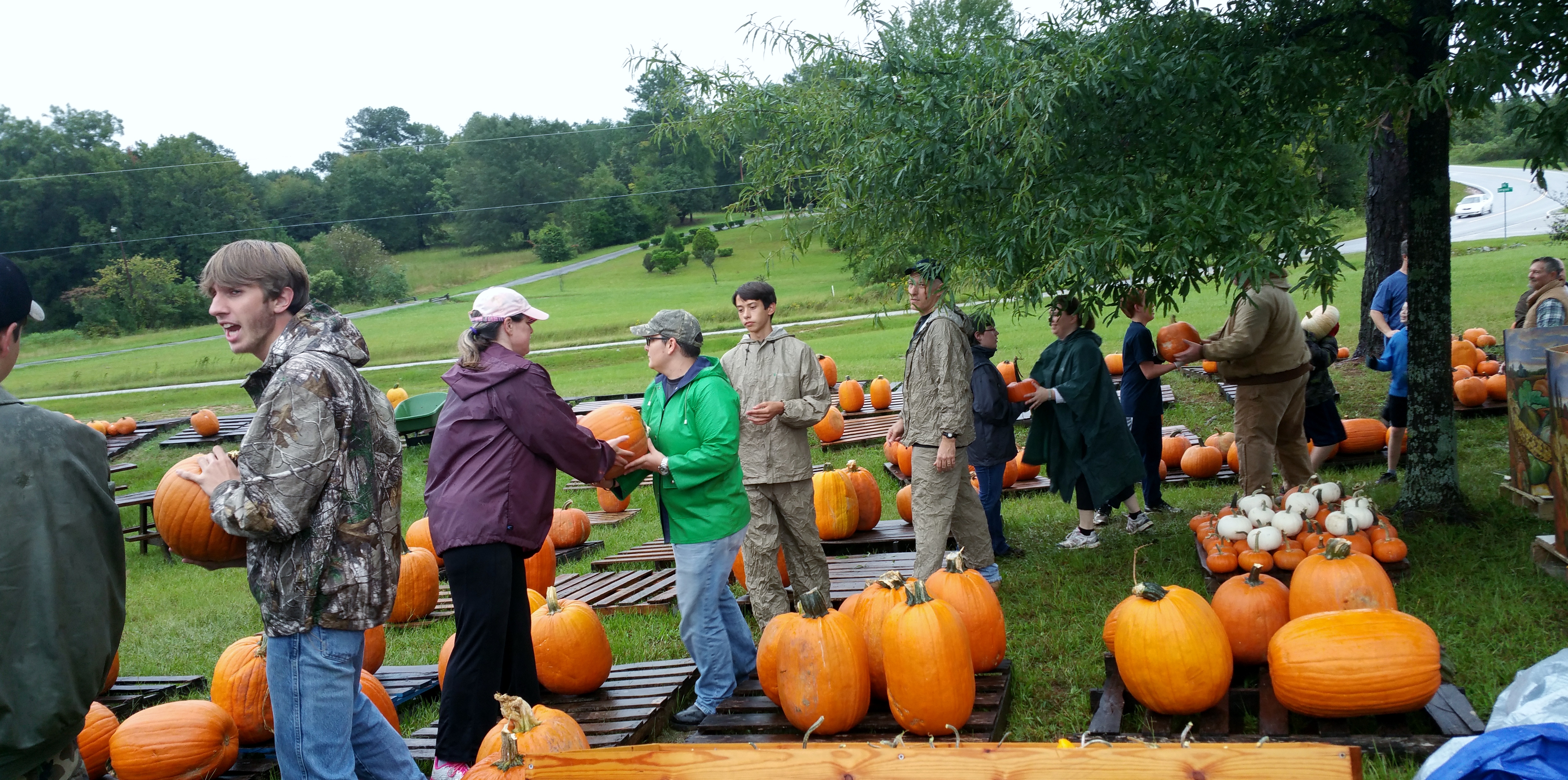 This year, one of our young parishioners talked his Dutch Fork High School ROTC unit into helping, our Boy Scout troop and Venture Scouts turned out, members of the parish, and one former member who drove in from out-of-state appeared, undeterred by the on-coming weather, as I am told he does every year. “It gets in the blood, the pumpkin patch,” he winked in explanation.